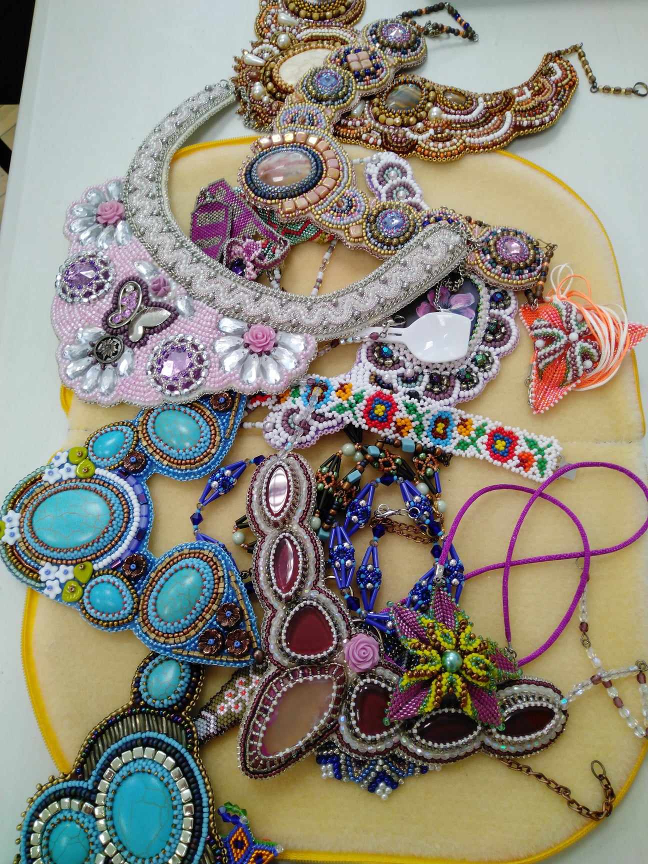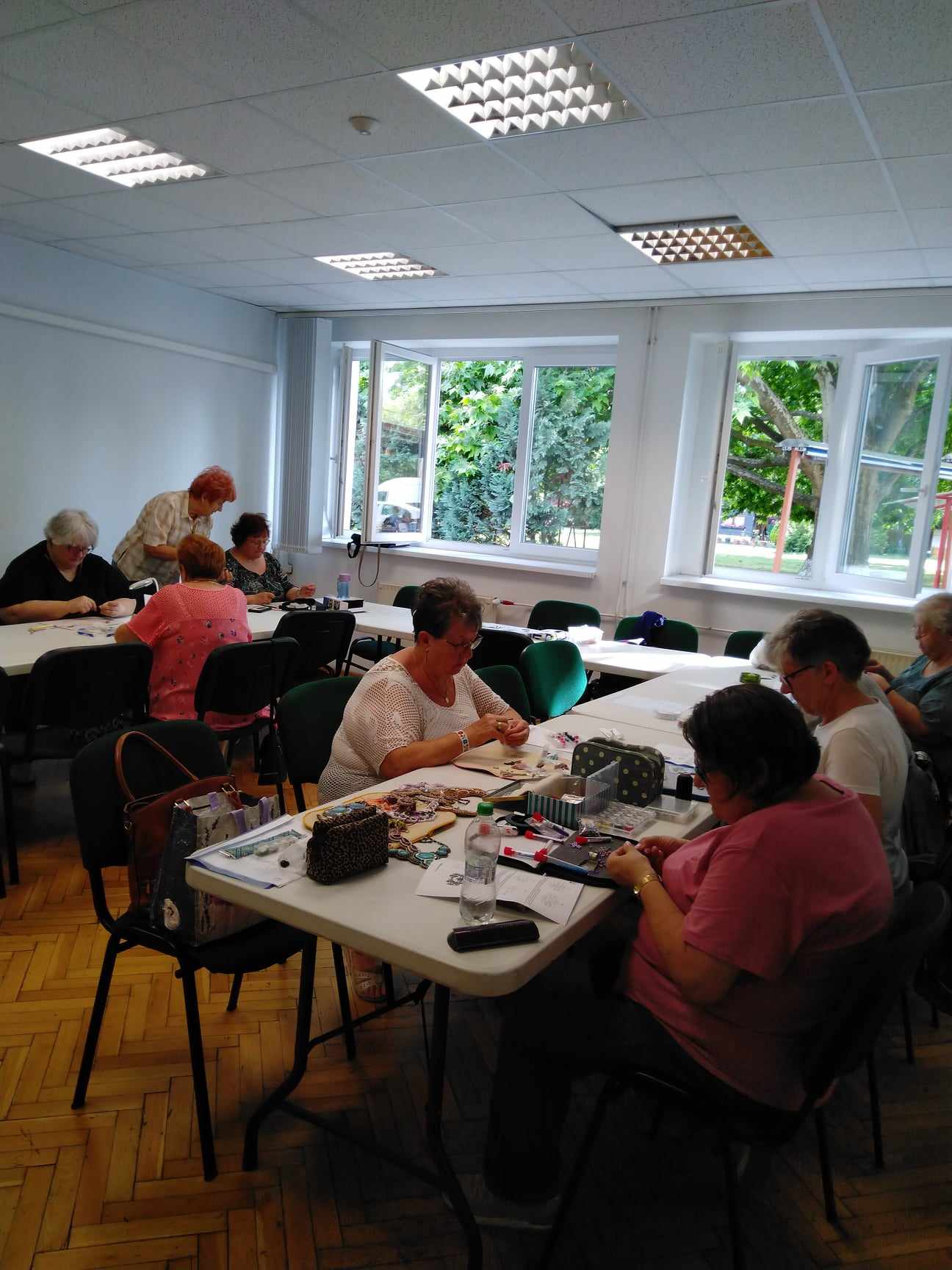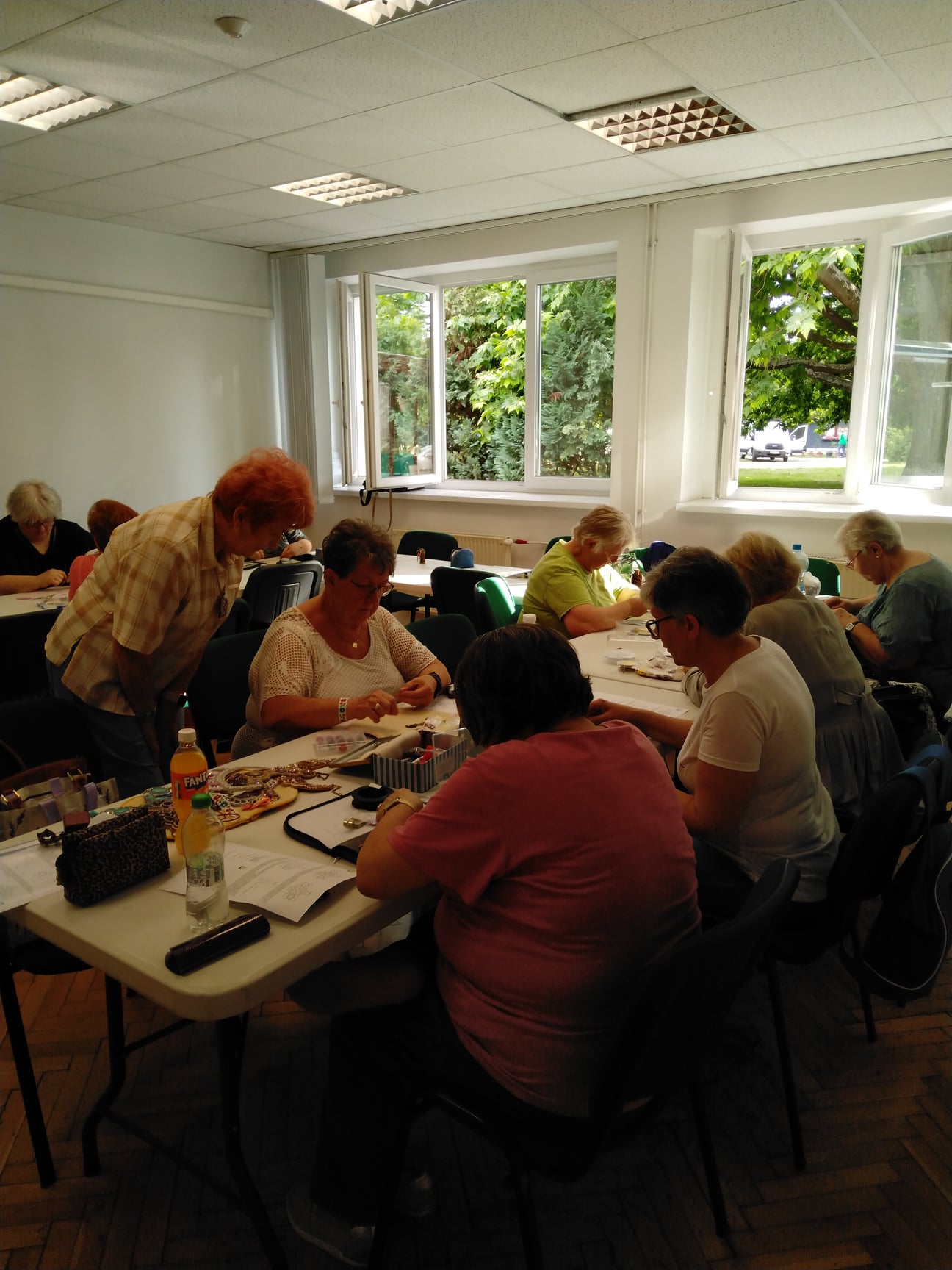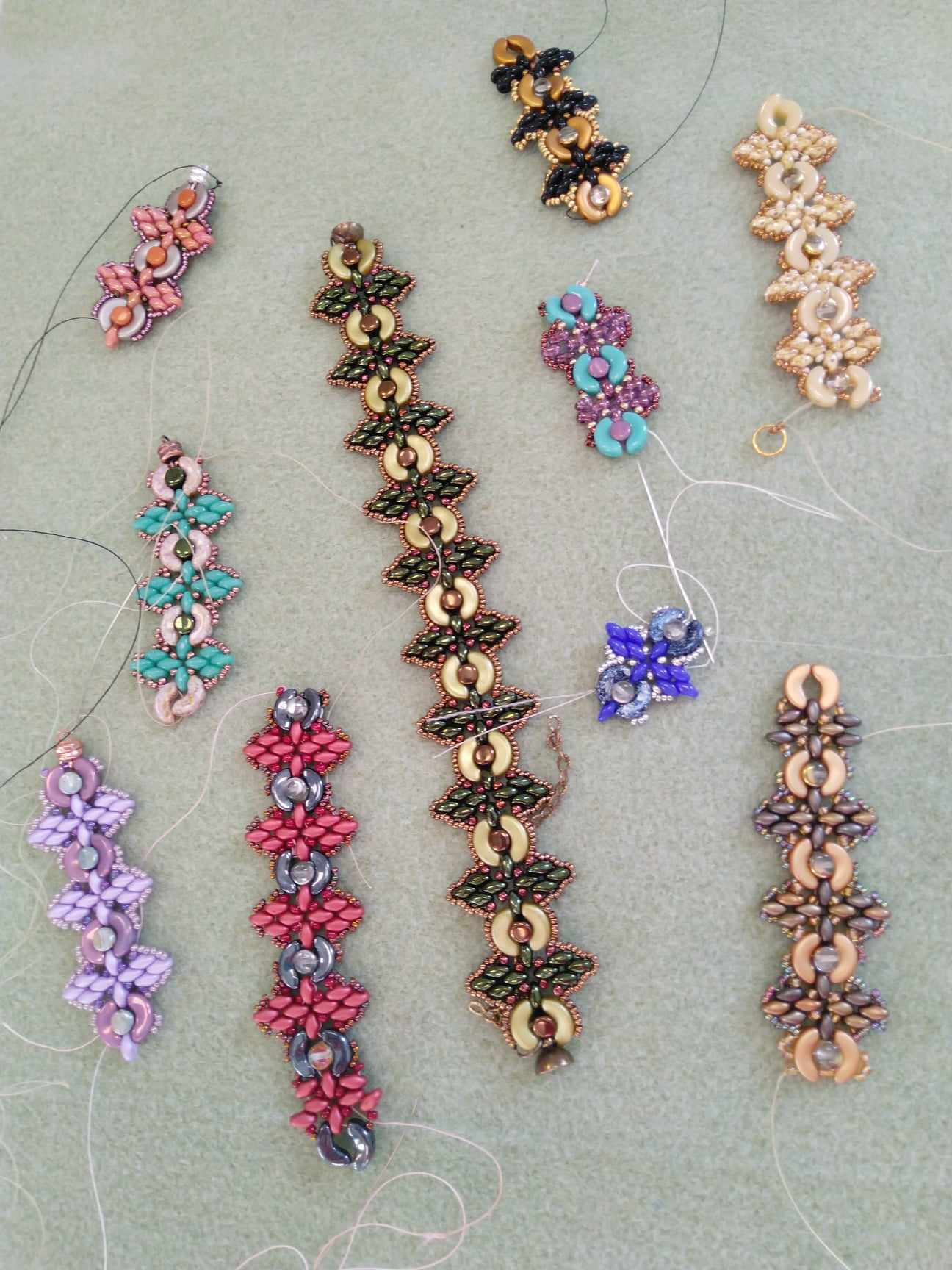 A május 10 -ei egyesületi foglalkozáson Ladányi Zsóka tanította Gordon Éva Gót karkötő mintáját. Zsóka megmutatta a korábban készült ékszereit is.