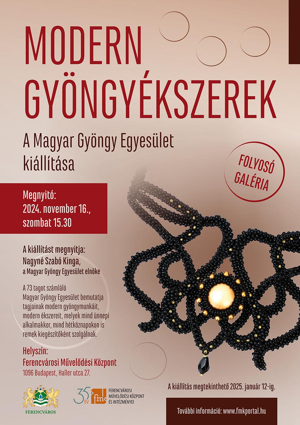 Meghívó a Magyar Gyöngy Egyesület kiállítására, melynek megnyitója november 16-án lesz a Ferencvárosi Művelődési Központban.