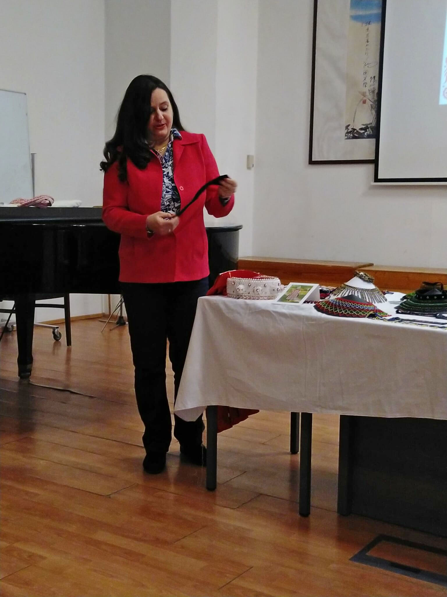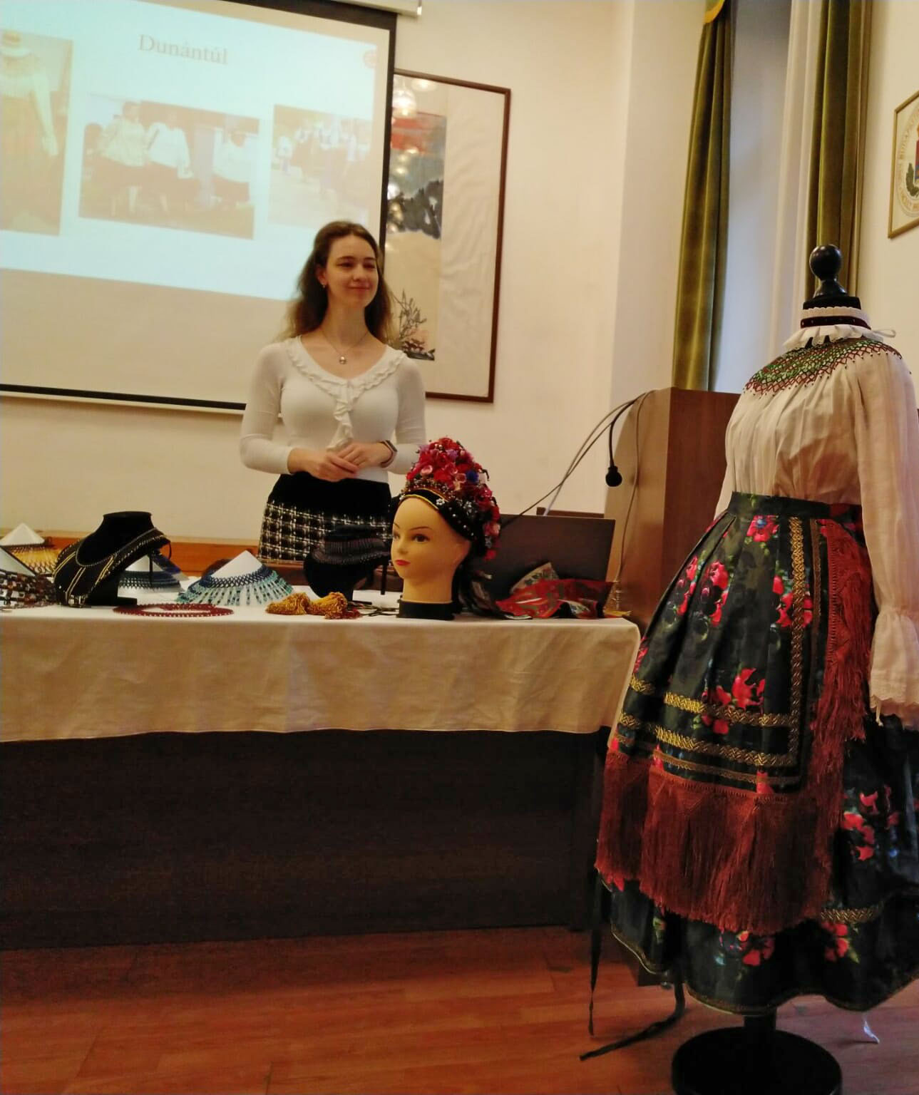Néhány tárgy erejéig megismerhették a jelenlévők más tájegységek népi ékszereit, viseleti darabjait is, például a kalotaszegi pártát, kalárisokat, tászlikat.