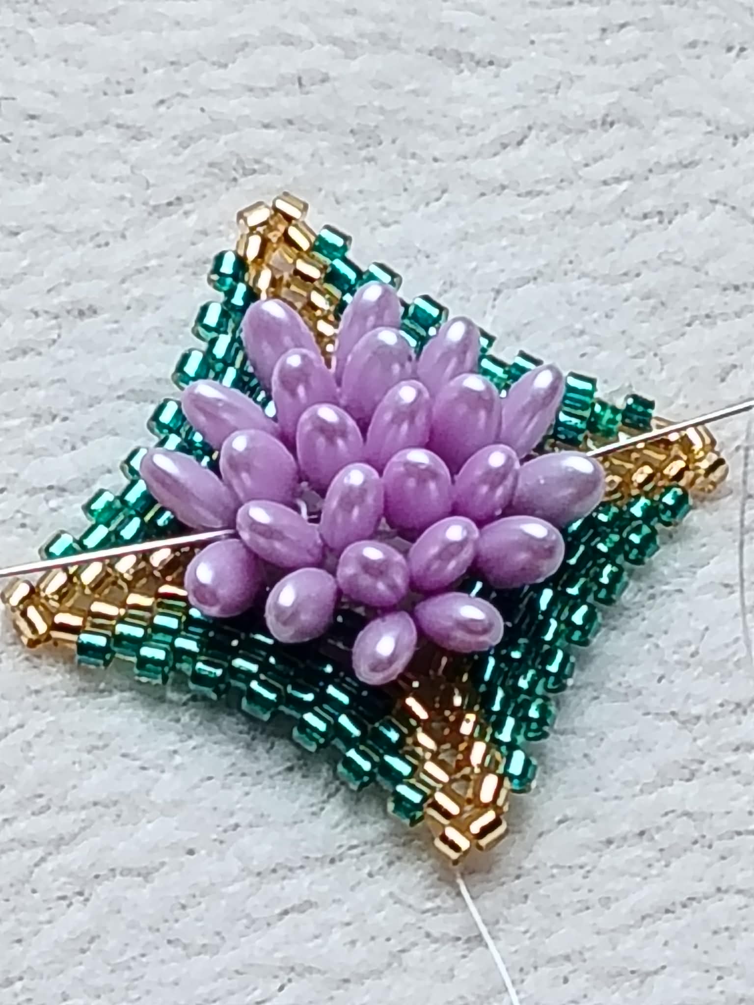 Február 12-ei foglalkozásunkra Ladányiné Zsóka készült egy izgalmas témával, a krizantém medállal, melynek tervezője Mikki Ferrugiaro.