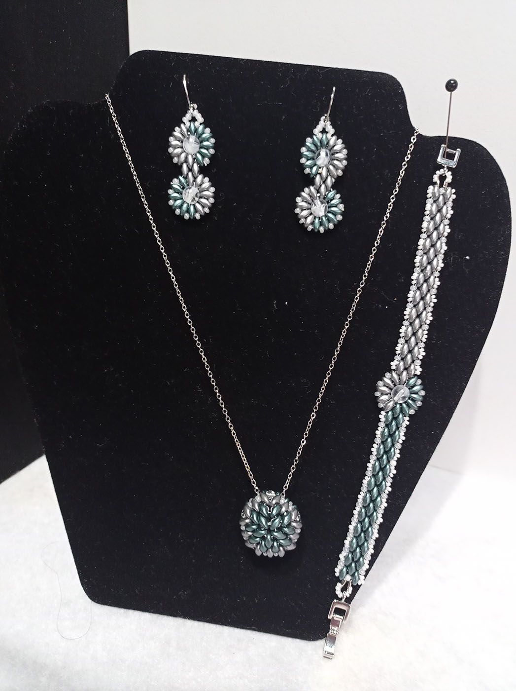 Van egy pár fős lelkes kis csapatunk a lakóhelyemen, akikkel havonta összeülünk gyöngyözni. Leginkább modern ékszereket készítek különböző formagyöngyök felhasználásával többféle technikával.