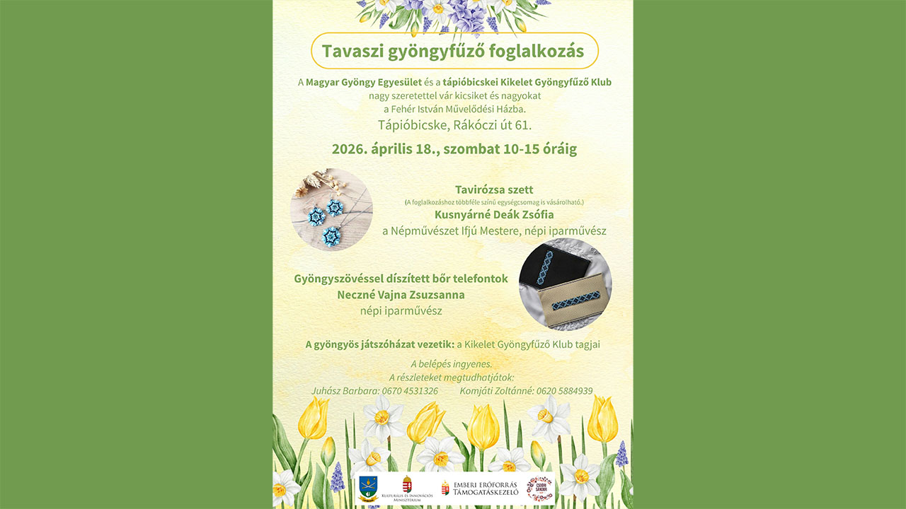 A Magyar Gyöngy Egyesület és a tápióbicskei Kikelet Gyöngyfűző Klub ismét megrendezi...