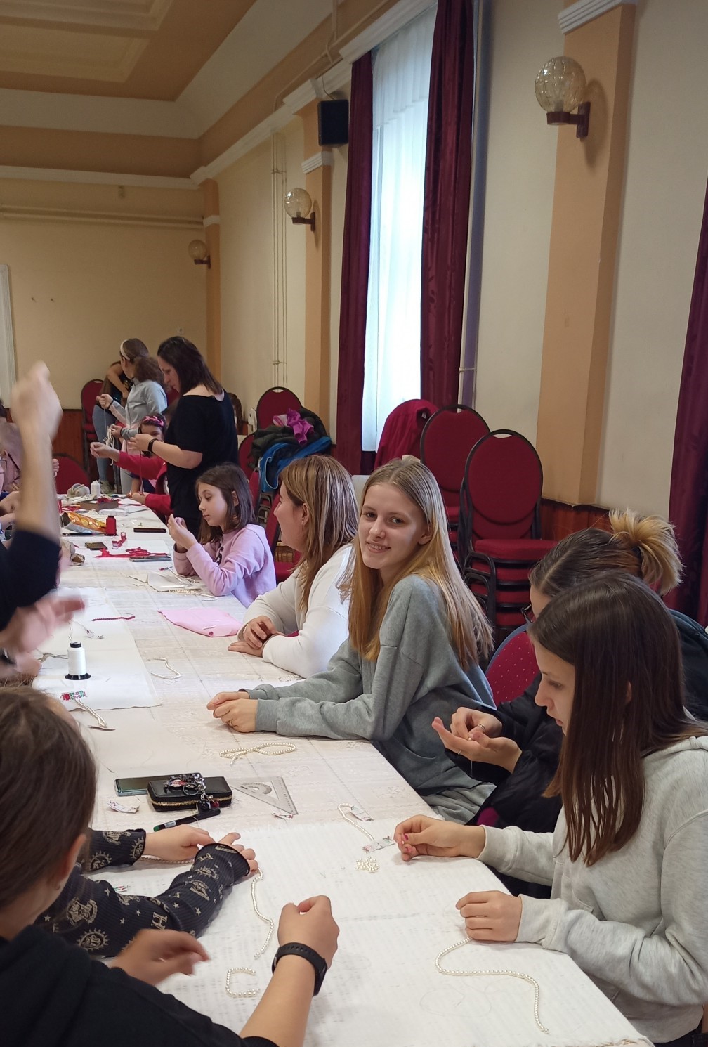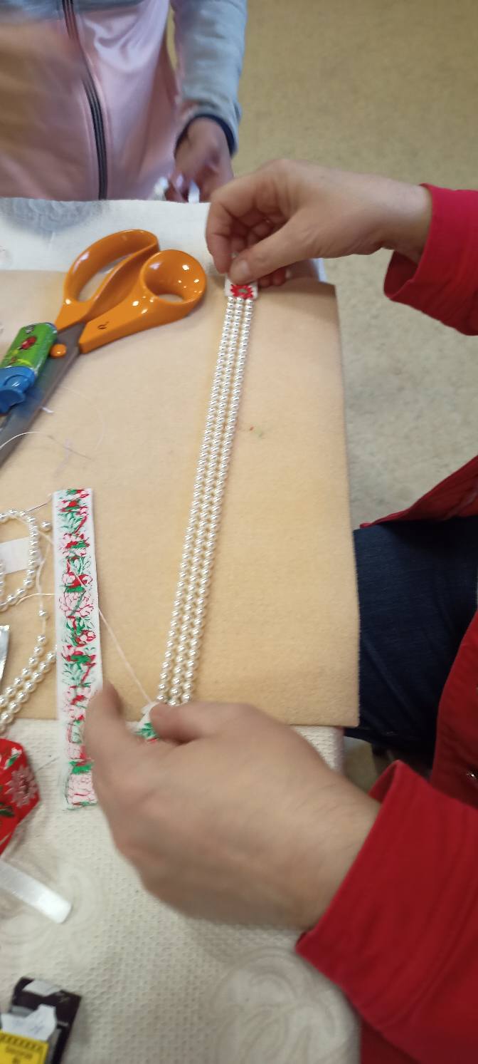 Komjáti Zoltánné vezetésével nemcsak a néptáncosok apraja-nagyja, de a szülők is lelkesen fűzték a gyöngyöt. A foglalkozáson Laczkó Tibor, az iskola néptánctanára volt a gyerekek és a szülők segítségére.