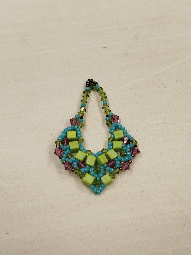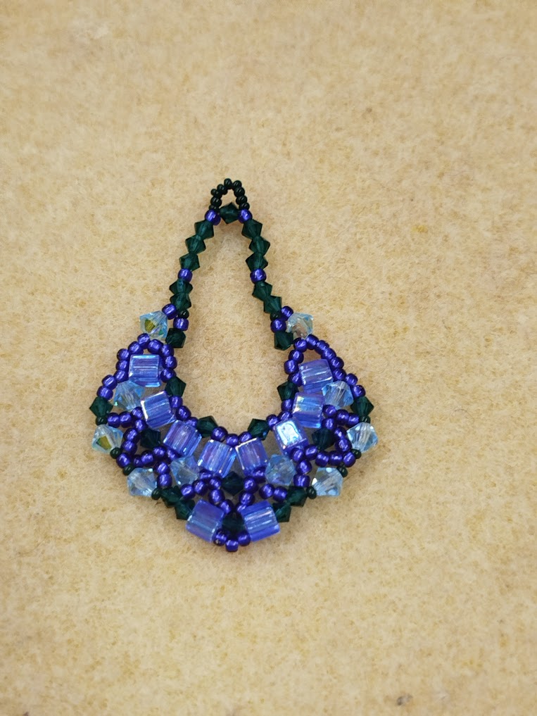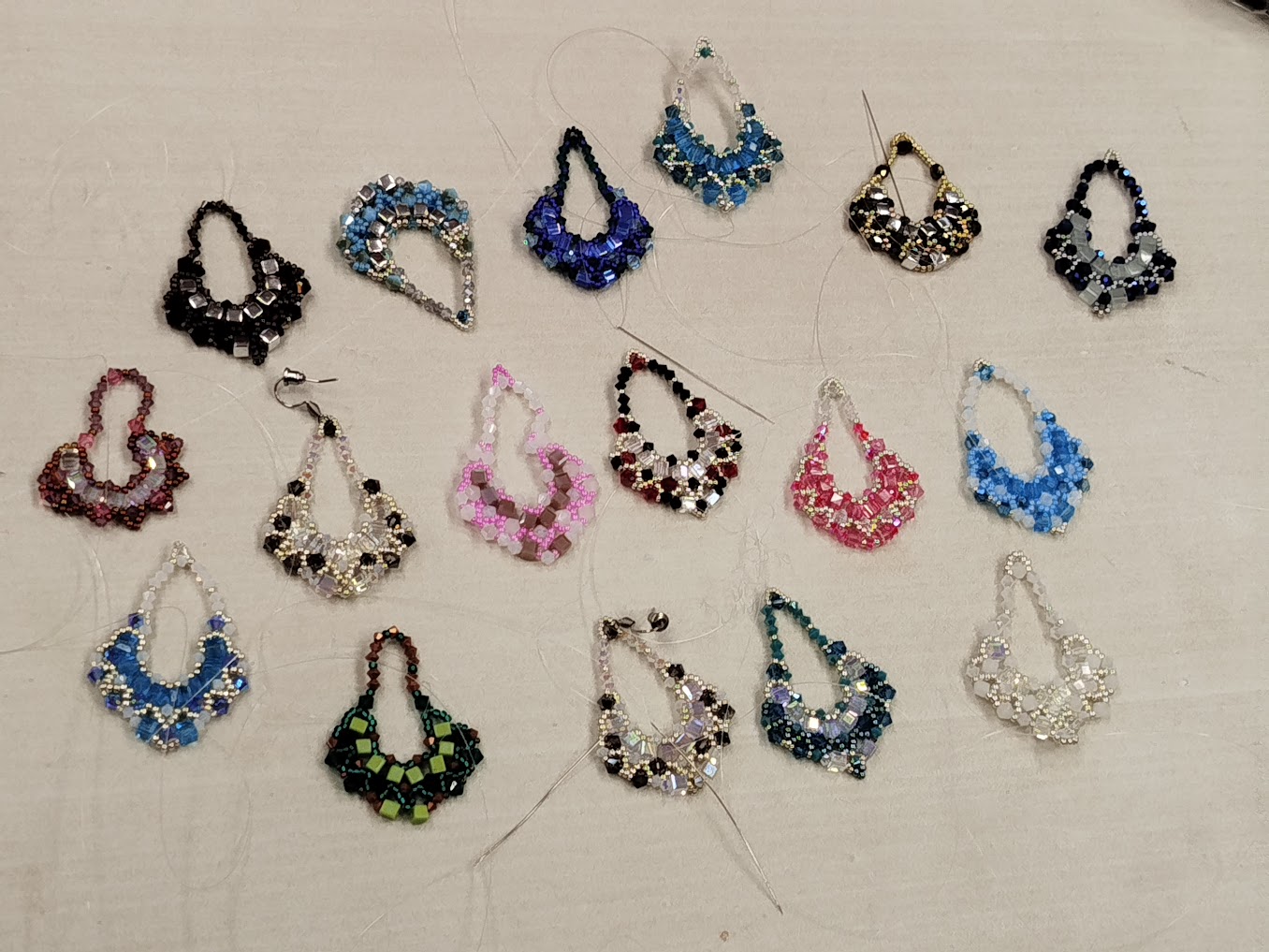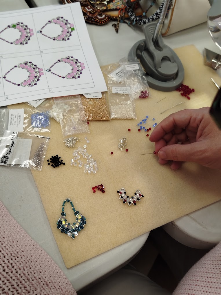 2025. május 8-ai foglalkozásunkon egy szép indiai stílusú fülbevaló elkészítését tanultuk meg Simon Szerénától Eliana Maniero mintája alapján.