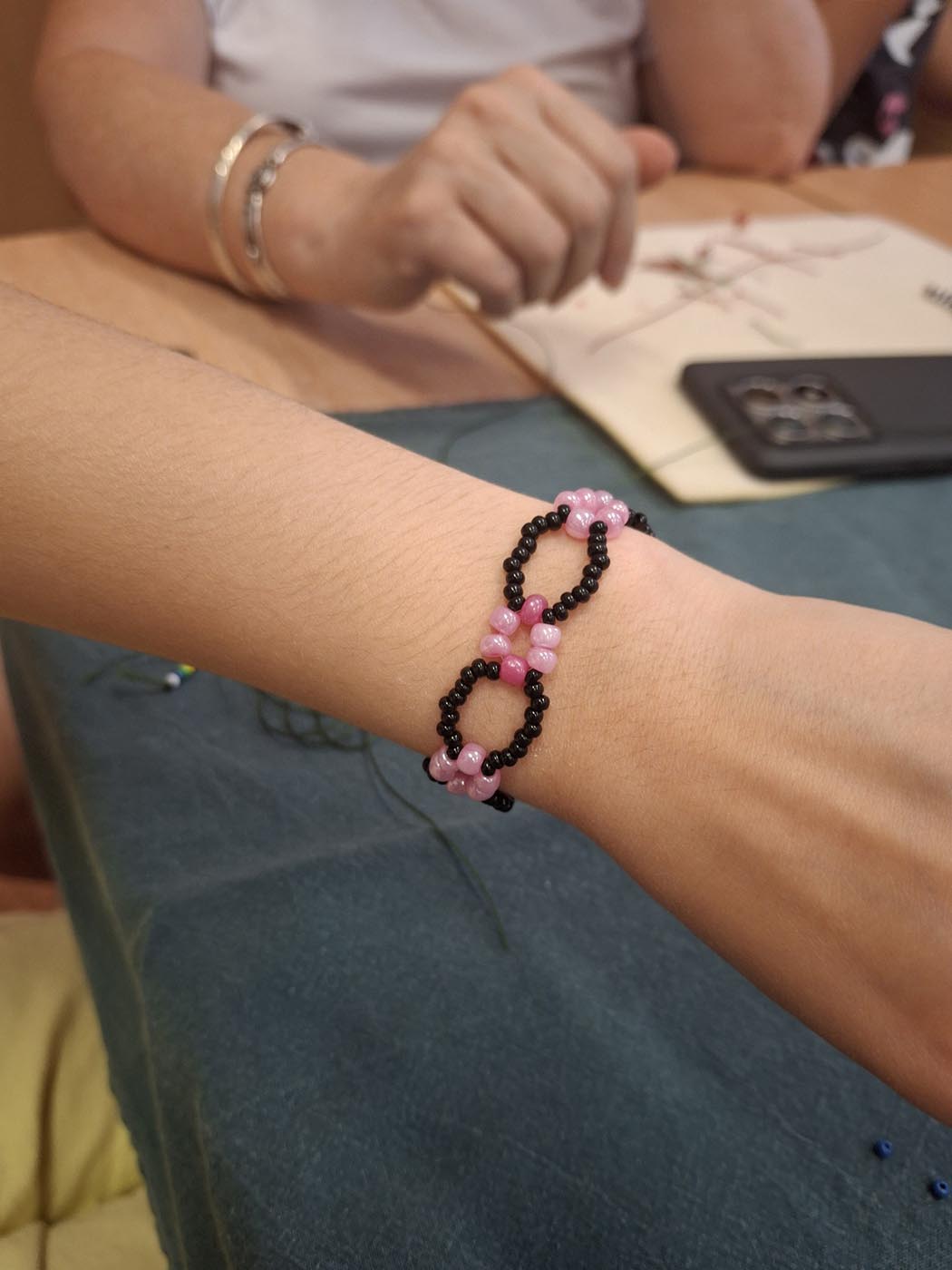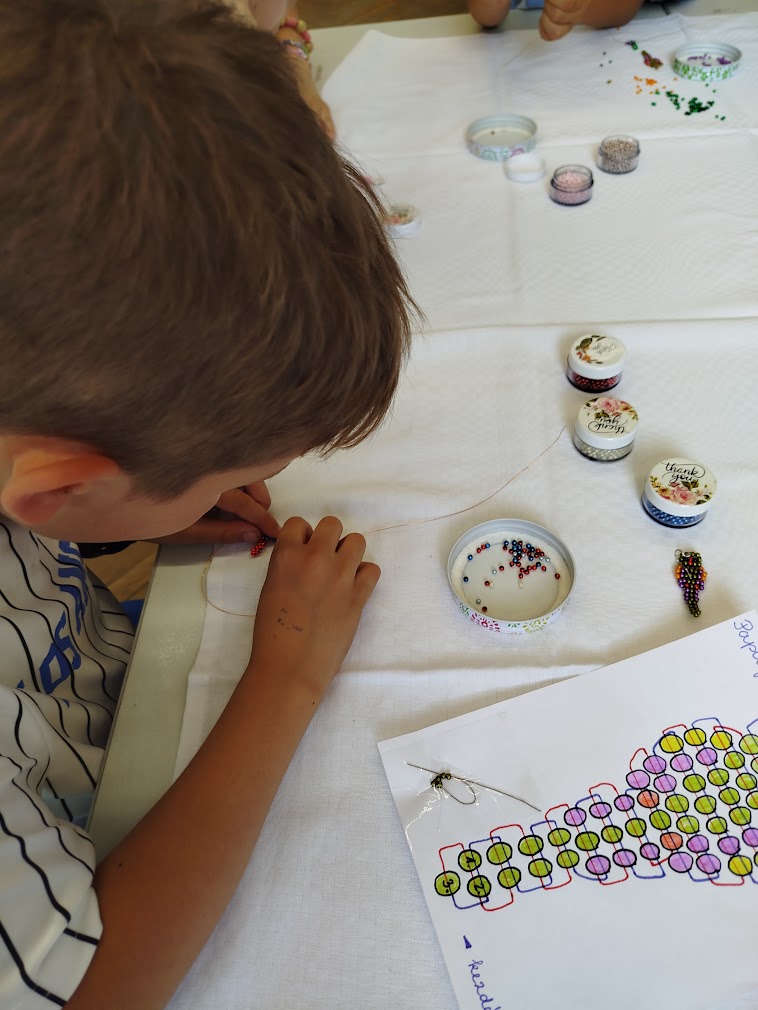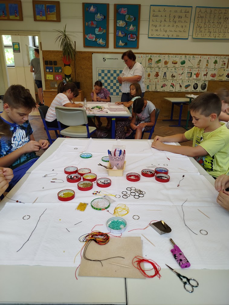 Első alkalommal július 14-én a Molnár Ferenc Magyar-Angol két Tanítási Nyelvű Általános Iskolában került sor gyöngyfűző foglalkozásokra Neczné Vajna Zsuzsanna vezetésével, Darida Mónika, Ladányi Lászlóné és Sturovics Judit egyesületi tagjaink részvételével.
