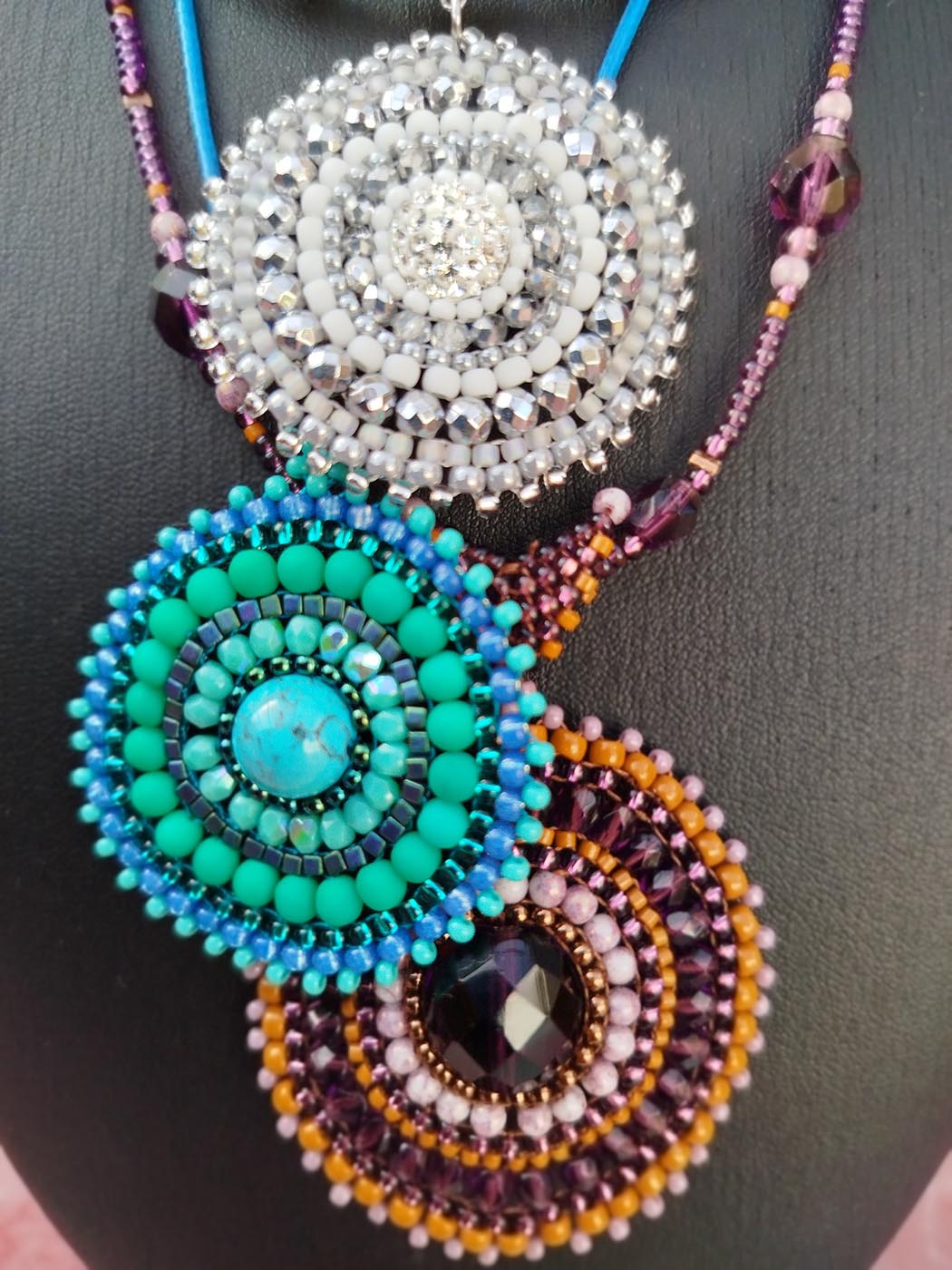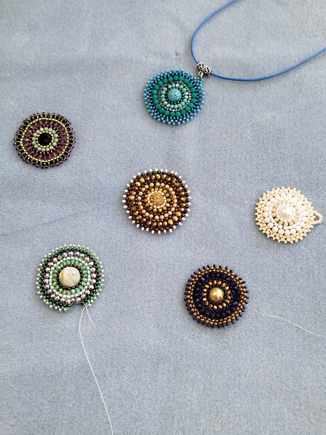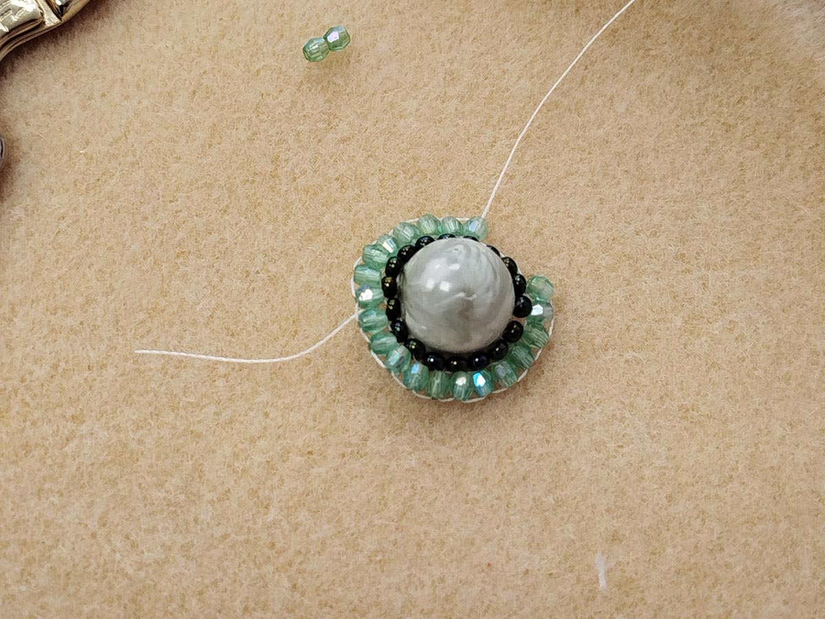 A medál közepére egy nagy golyógyöngy (vagy csiszolt) került, körben pedig különböző