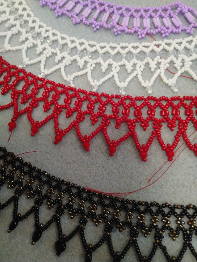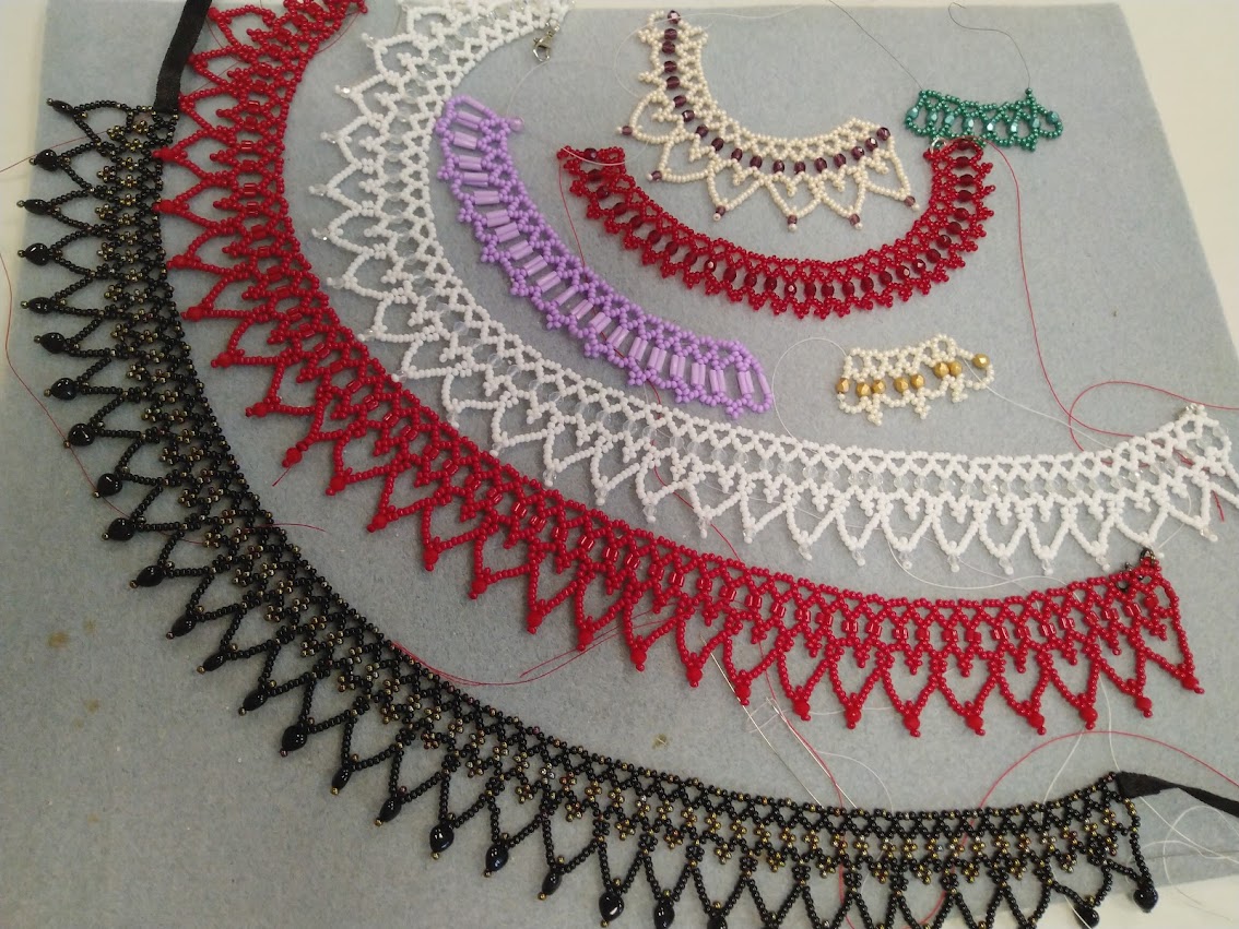 A jól variálható mintához a kásagyöngyökön kívül tetszés szerint használhattunk díszítésként csiszolt-, szalma- vagy golyógyöngyöket.