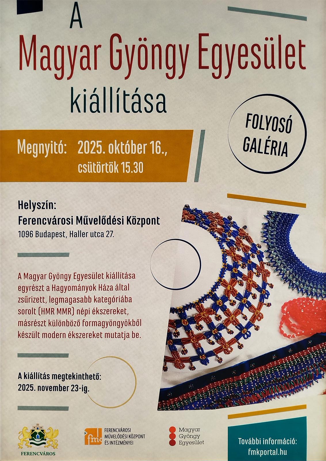 A hagyománynak megfelelően 2025-ben is rendeztünk kiállítást tagjaink népi és modern ékszereiből a Ferencvárosi Művelődési Központban október 16-án.