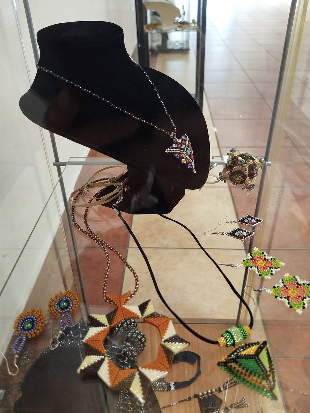 A kiállítást berendezte Fehér Anna Király Zsiga-díjas gyöngyfűző,