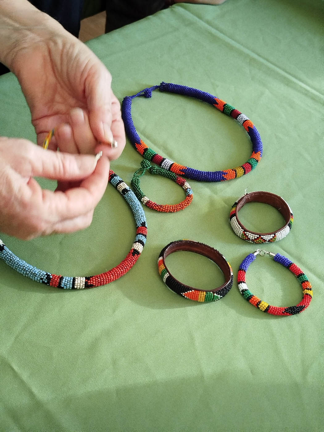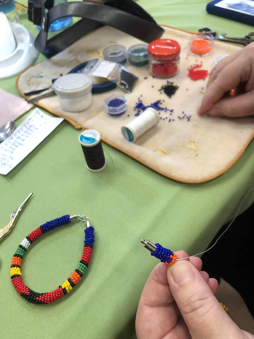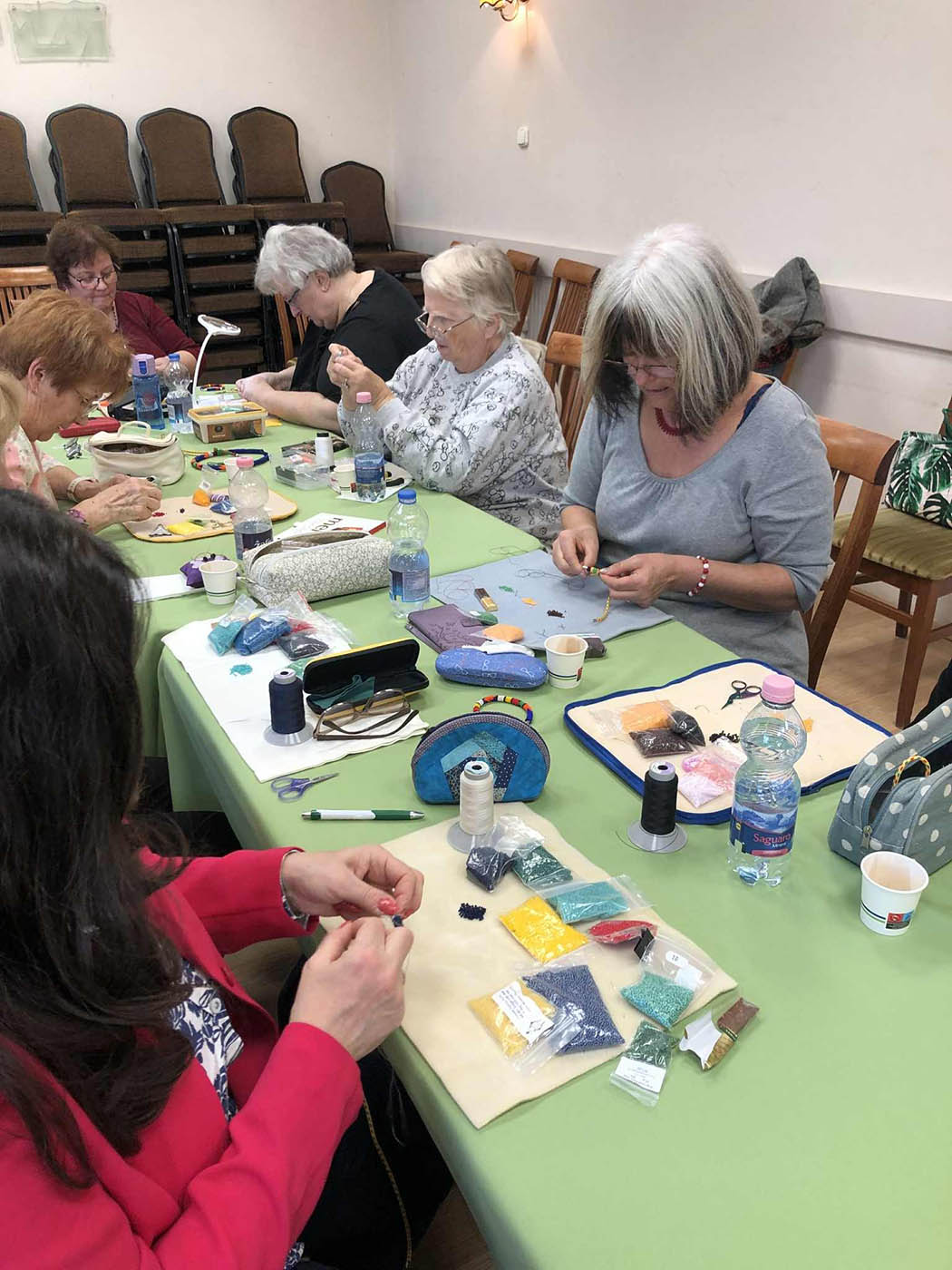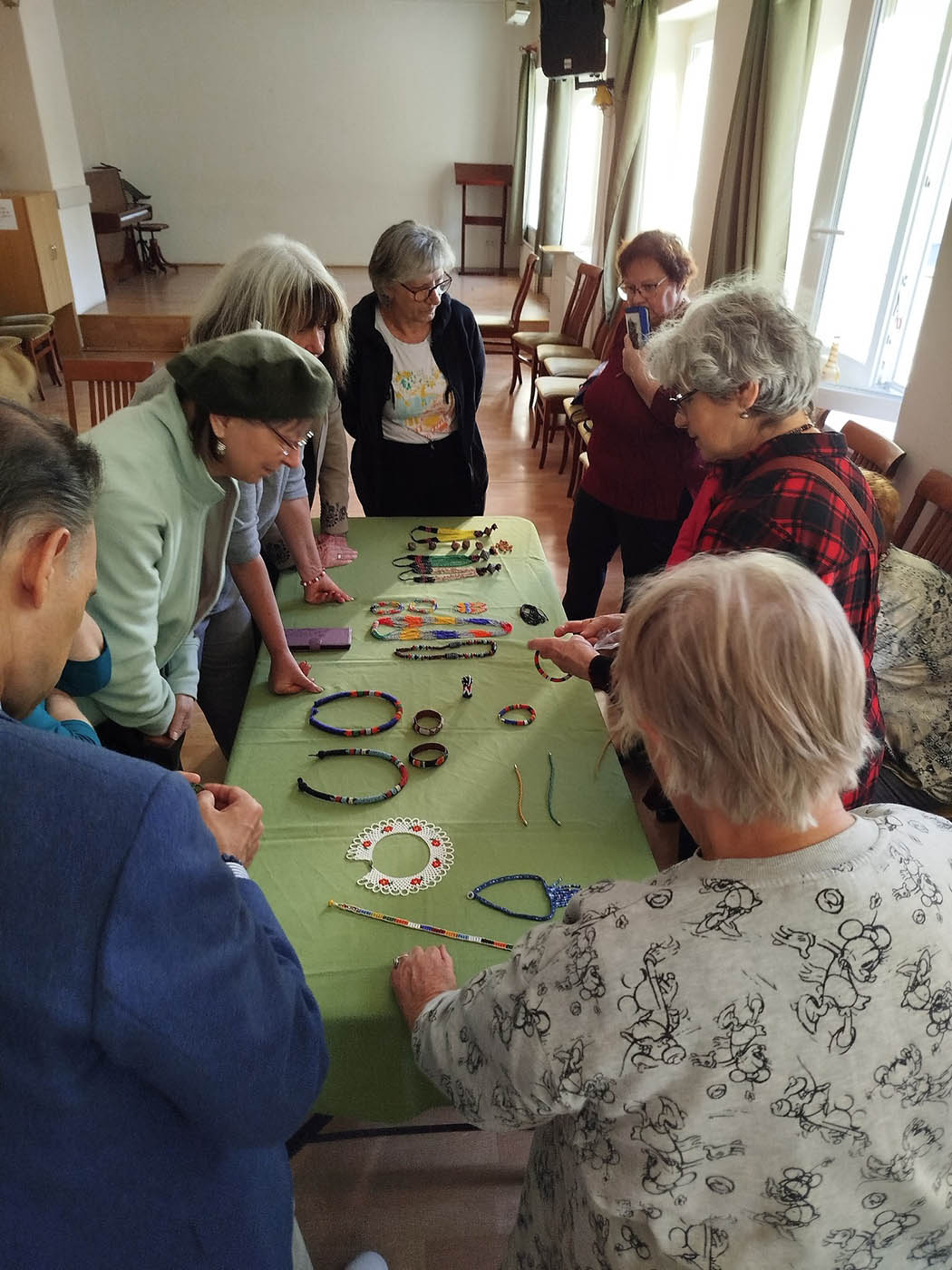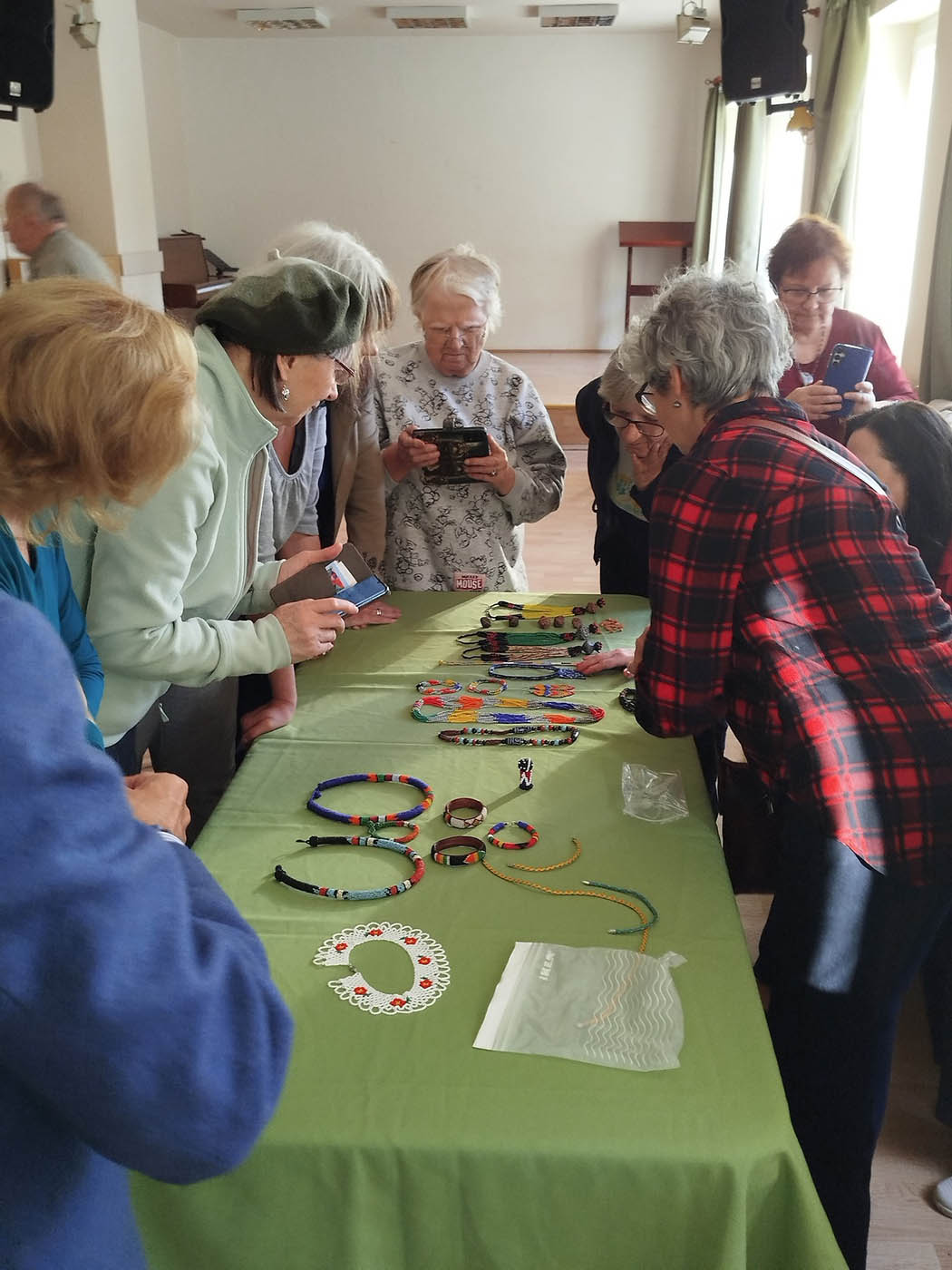 2025. október 16-án Fehér Anna gyöngyfűző, Király Zsiga-díjas népi iparművész, a Népművészet Ifjú Mestere bemutatta a Mindszenten tartott Nyári Gyöngyös Műhelye anyagát, majd egy zulu ékszer készítését tanította meg az egyesület tagjainak. Az élénk színű cseh kásagyöngyöket zsinór alapra dolgoztuk rá.