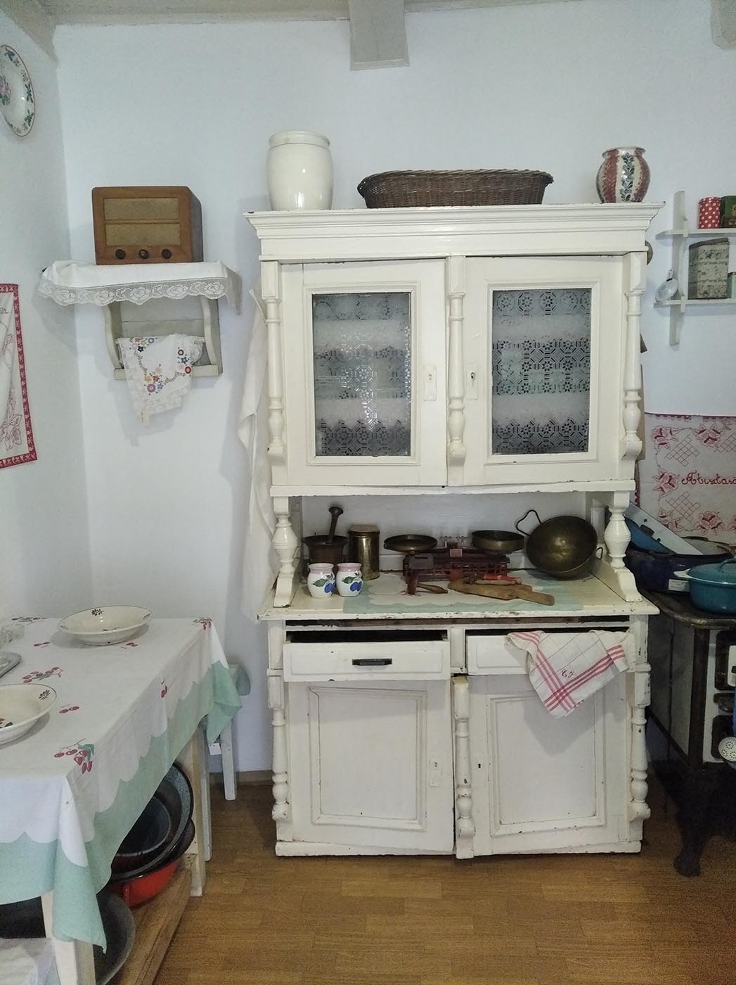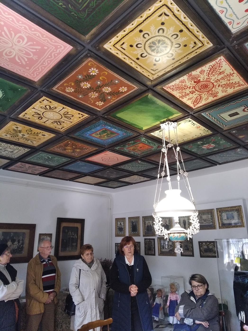 Elekné Szemők Erzsébet, a Fóti Települési Értéktár Bizottság tagja vezetett végig bennünket a két tájházi épület szobáin. A fóti paraszti és polgári élet használati tárgyaiból álló, a lakosság hétköznapi tevékenységét és ünnepi szokásait bemutató gazdag gyűjteményről kaptunk érdekes tájékoztatást.